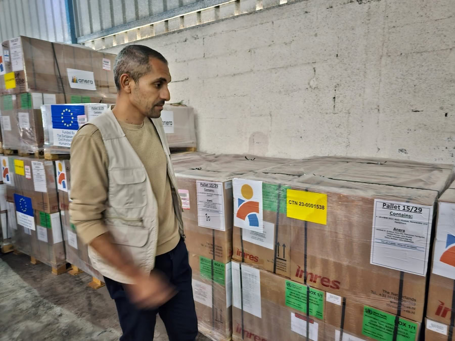 An Americares shipment of 6 tons of desperately needed surgical supplies, bandages, antibiotics, oral rehydration salts and labor and delivery supplies arrives in Gaza in November 2023. Credit to Anera