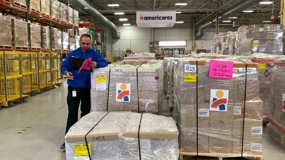Americares staff prepare a shipment for Gaza at Americares Global Distribution Center in Stamford, Connecticut, on Friday, Jan. 5, 2024. (Photo/Tara O’Neill).