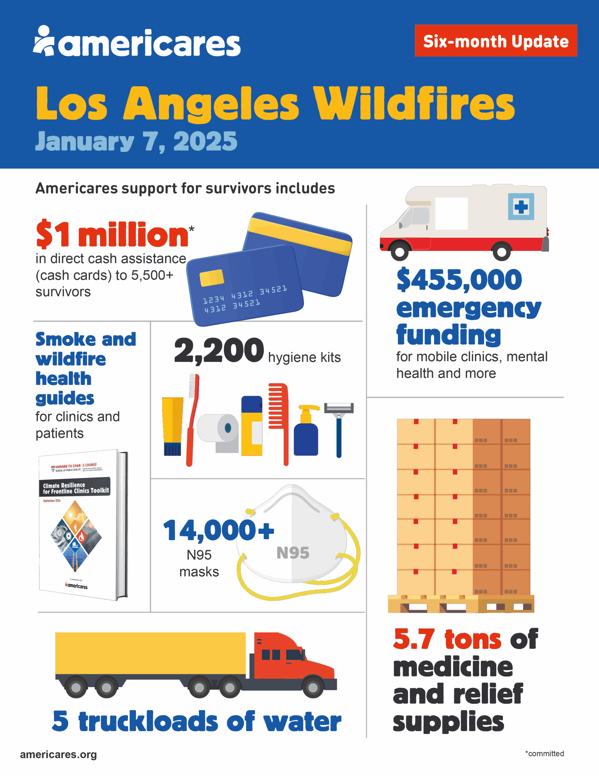 Six months after wildfires torched 37,700 acres across Los Angeles County, destroying entire communities, Americares support for local health providers is helping survivors access the health services they need.