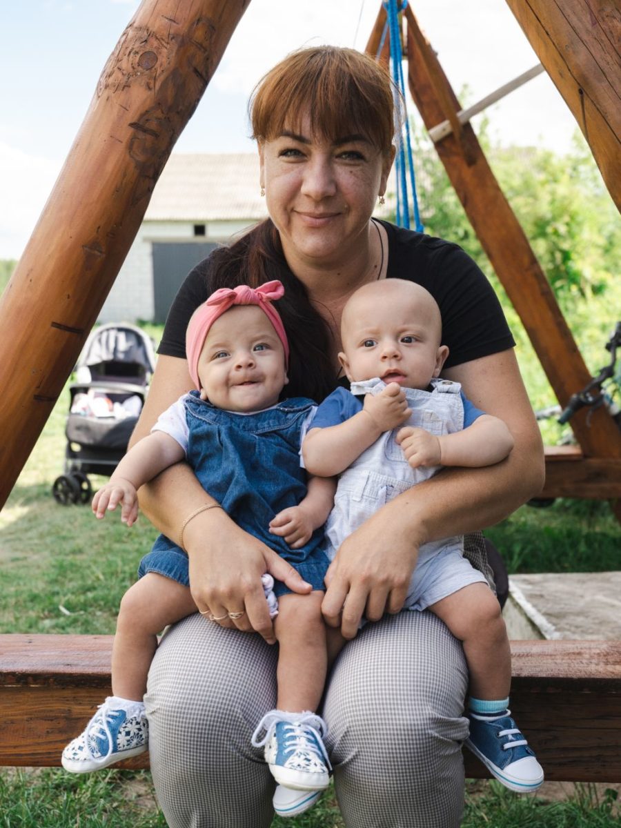 “The babies were born in February. We were discharged from the hospital on March 15, and three or four days later, a building in my apartment block was shelled, so my husband took us to the railroad station. From Lviv, we came here, and a volunteer brought us everything we needed. Now I can say that people shouldn’t be scared or worried [to leave Ukraine]. There are organizations that can help you survive and settle in. We’re grateful that we can hide somewhere from the war.”