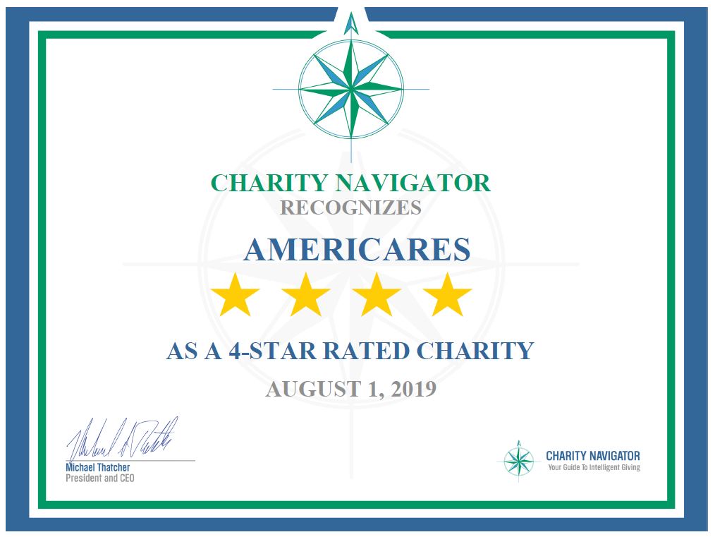 “Americares exceptional 4-star rating sets it apart from its peers and demonstrates its trustworthiness to the public,” according to Michael Thatcher, president & CEO of Charity Navigator. “Only a quarter of charities rated by Charity Navigator receive the distinction of our 4-star rating. This adds Americares to a preeminent group of charities working to overcome our world’s most pressing challenges. Based on its 4-star rating, people can trust that their donations are going to a financially responsible and ethical charity when they decide to support Americares.”